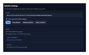 สิ่งที่ทำให้ RelinkIt แตกต่างจาก URL shorteners มาตรฐานคือคุณสมบัติด้านนโยบายที่แข็งแกร่ง ผู้ใช้สามารถกำหนดกฎการหมดอายุ ตั้งค่าขีดจำกัดการคลิก และใช้ข้อจำกัดต่อ IP ทำให้เหมาะสำหรับการใช้งานทางธุรกิจ ส่วนขยายยังรวมถึงส่วนโปรดสำหรับนโยบายที่ใช้บ่อยและรักษาประวัติของลิงก์ที่เพิ่งย่อไป เพื่อเข้าถึงความสามารถทั้งหมดของมัน จำเป็นต้องมีบัญชี RelinkIt ฟรีและ API key.